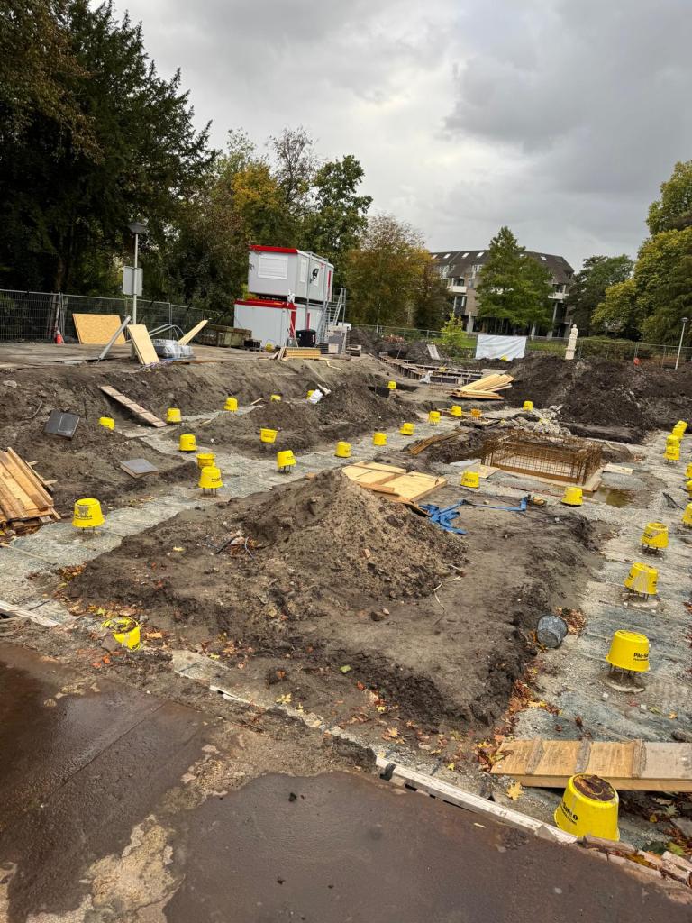 Het schiet al op met de bouw! De palen zitten in de grond en de contouren van de begane grond zijn zichtbaar. De bouwplaats begint nu echt tot leven te komen en elke dag is er weer iets nieuws te zien. We blijven jullie meenemen in deze ontwikkelingen, want de volgende stappen beloven minstens zo interessant te worden!