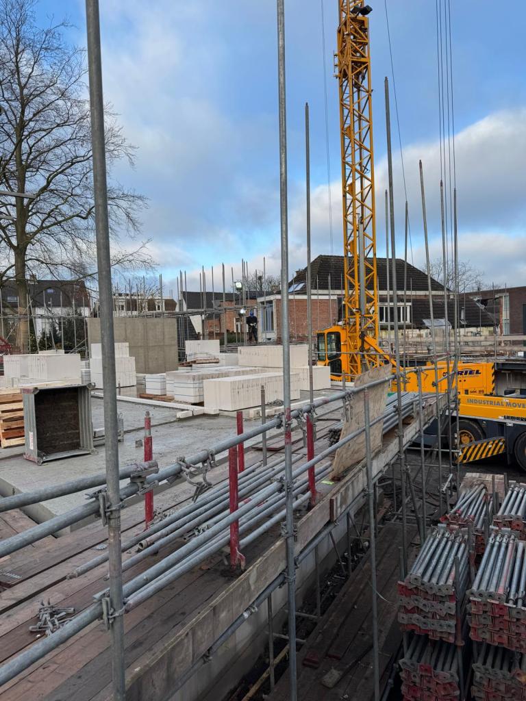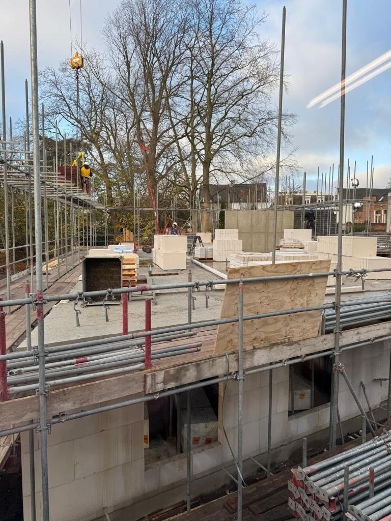 Inmiddels staat de basis van de begane grond er, dus zijn ze begonnen met werken aan de eerste verdieping.