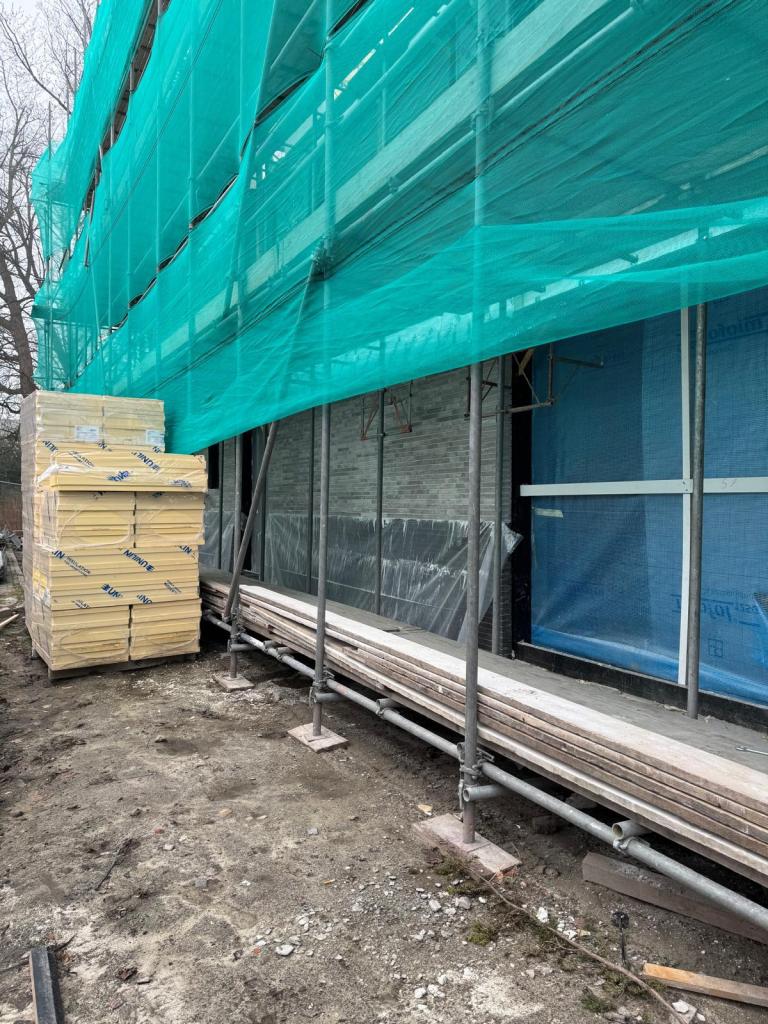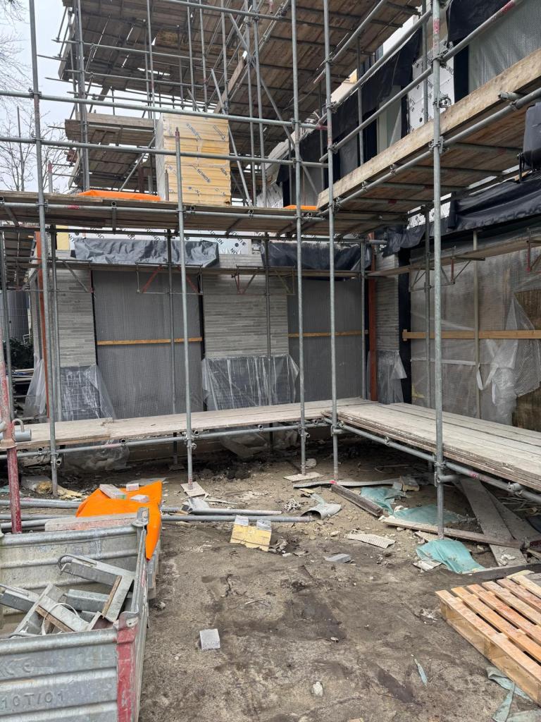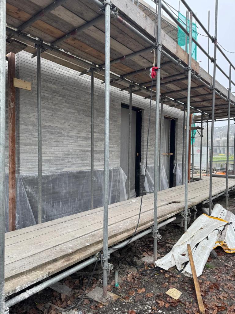 Er wordt toegewerkt naar het hoogste punt. Bij Sophie is op begane grond gestart met het aanbrengen van de gevelstenen.